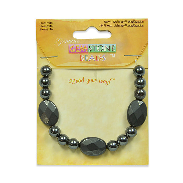 Hematite Gemstone Beads & Pendant - 8mm - 13 pcs. - Natural