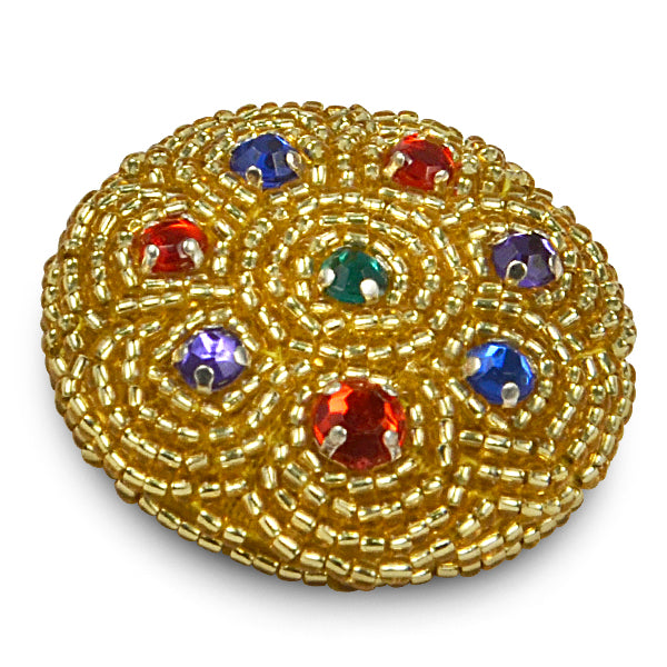 7/8" x 7/8" Jeweled Beaded Button - Gold Multi