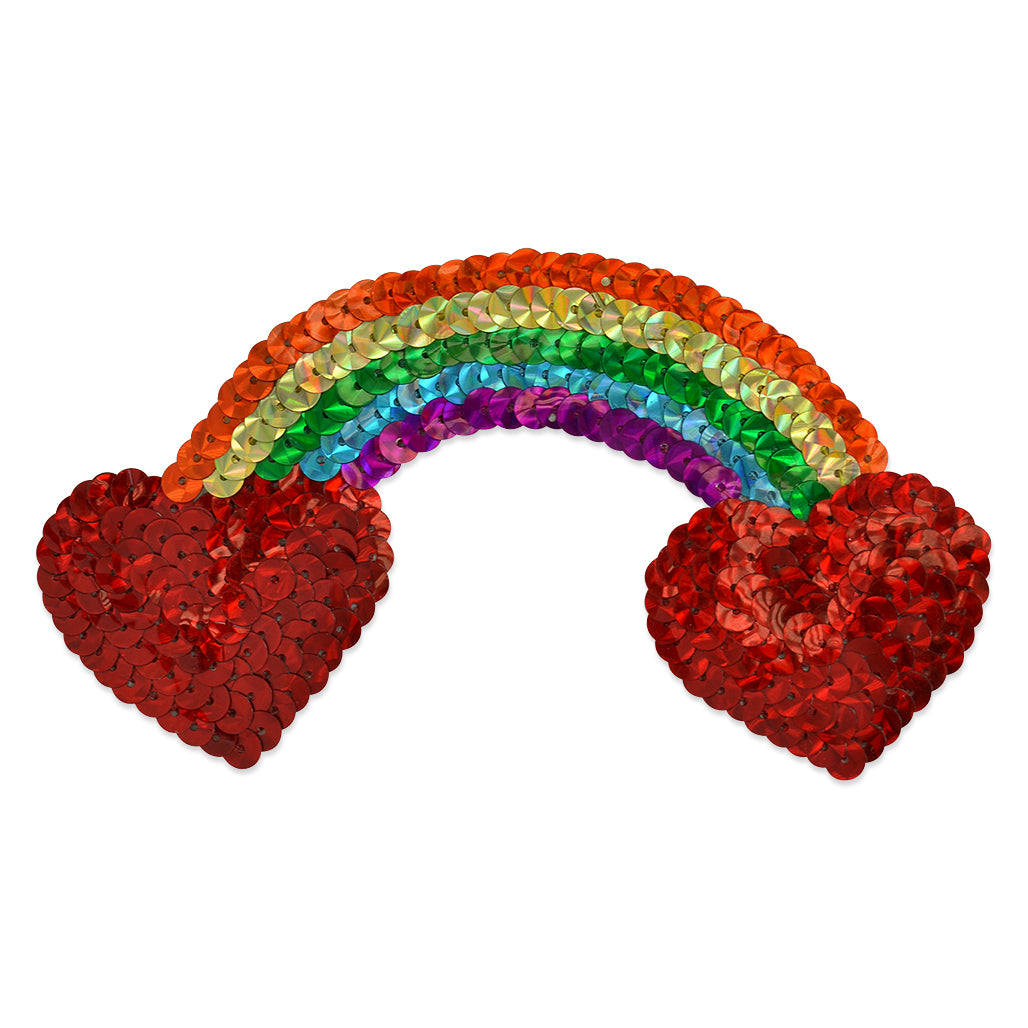 Rainbow With Hearts Sequin Applique/Patch - Red Multi
