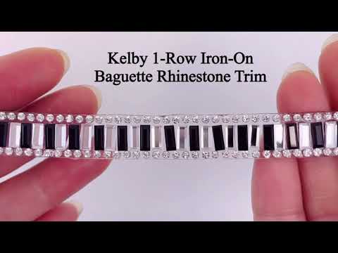- The Kelby 1-Row Iron-On Baguette Rhinestone Trim is an excellent choice to add a touch of glamour to any fashion accessory.