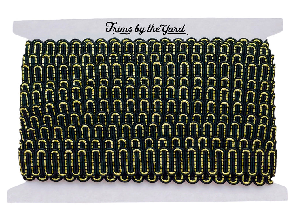 The Luna Metallic Braid Trim measures approximately 3/4" in width. This trim is great for embellishing clothing, costumes, accessories and some home decor items.