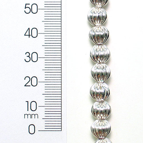 Pleated Metal 8mm Round Beads - Silver Finish - 8" Strand (26-28 Beads)